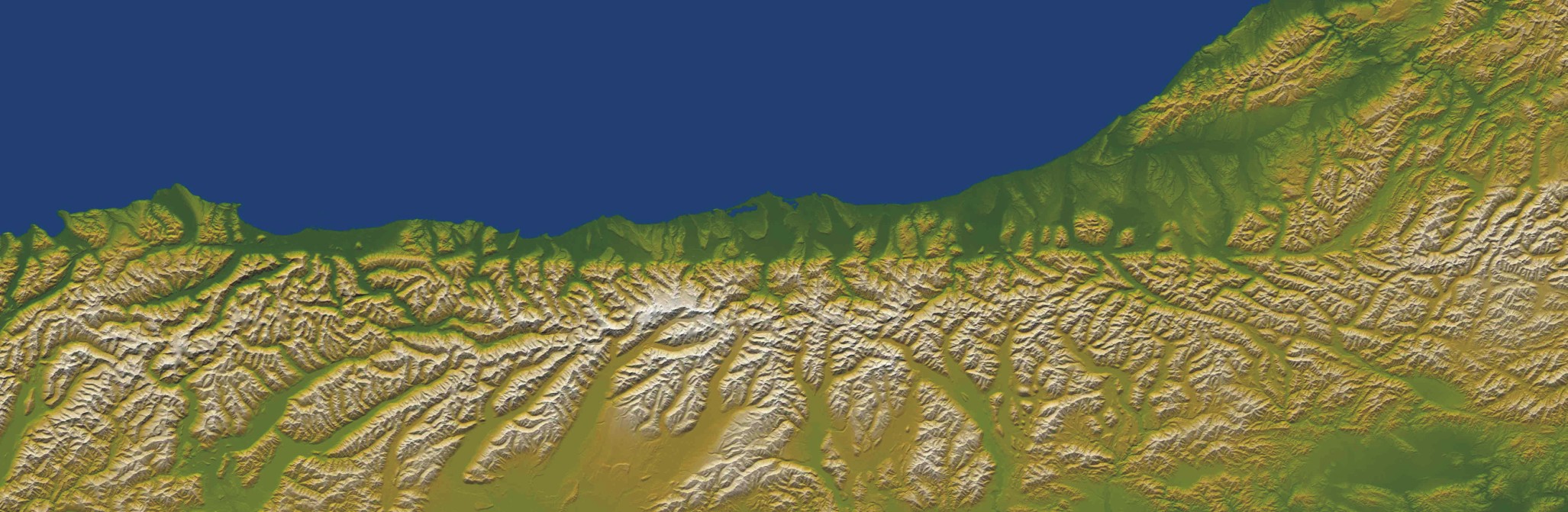 A transform fault boundary is an area where two lithospheric plates grind past one another. The San Andreas Fault, illustrated in the screen to the far right, is an example of a transform fault boundary with the Pacific plate “sliding” past the North American plate. Because of their nature, transform boundaries can be quite visible when they occur on land. The Alpine Fault, a transform fault boundary on the South Island of New Zealand is, like the San Andreas Fault, quite visible from outer space. A transform fault boundary is also known as a conservative margin since crust is neither created (i.e., divergent boundary) nor destroyed (i.e., convergent boundary).