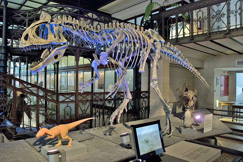 Imagine the preceding battle - the 22-foot (6.7 meters) cryolophosaurus standing nearly upright on his two sturdy back legs while he ripped at the plant-eating prosauropod with his sharp teeth and front claws. The prosauropod slightly bigger at 25-feet-long (7.6 meters), but without defences, trying to escape as they splash together into a river bed running red with his blood.