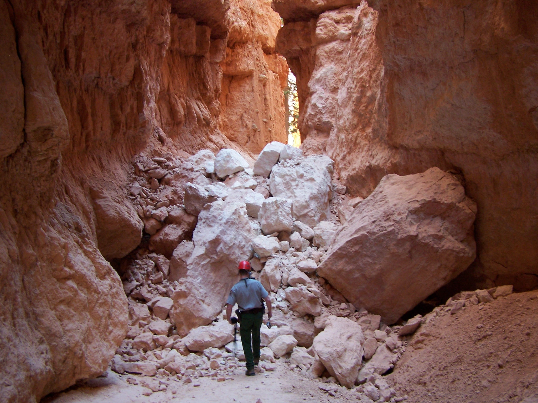 Gravity caused these rocks to fall on May 23, 2006 resulting in the closing of the Navajo Loop Trail in Bryce Canyon National Park in Utah.
