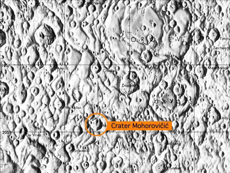 Andrija Mohorovičić had a crater named in his honour in 1970. Crater Mohorovičić lies on the far side of the moon and has a diameter of 51 km (approximately 32 miles).